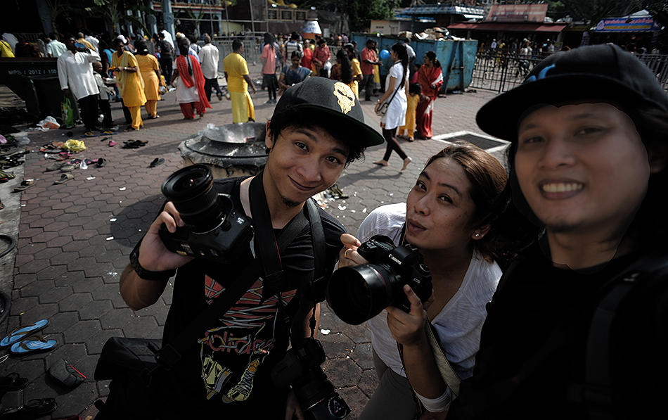 Bersama Farra Olivia dan Bali Mie, kami bergerak menuju ke Batu Caves seawal jam 5 pagi (tak la awal sangat memandangkan perarakan bermula jam 11 malam). Keputusan impromptu setelah berbincang selama 5 minit, kami terus pack kamera, start enjin kereta, dan terus mengharungi jalan tanpa sebarang sarapan. Jalan tak jem sangat, jadi kami sampai awal dan dapat parking yg best.