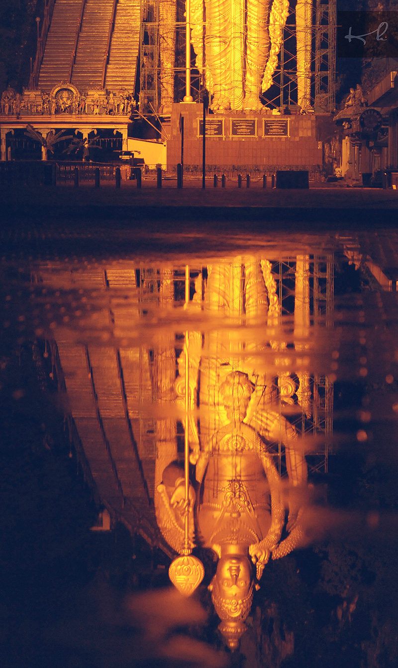 Bayang Dewa Subramania dibawah pantulan air di Batu Caves. -KH/Malaysia