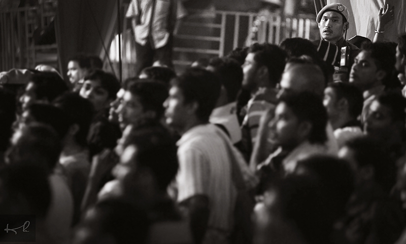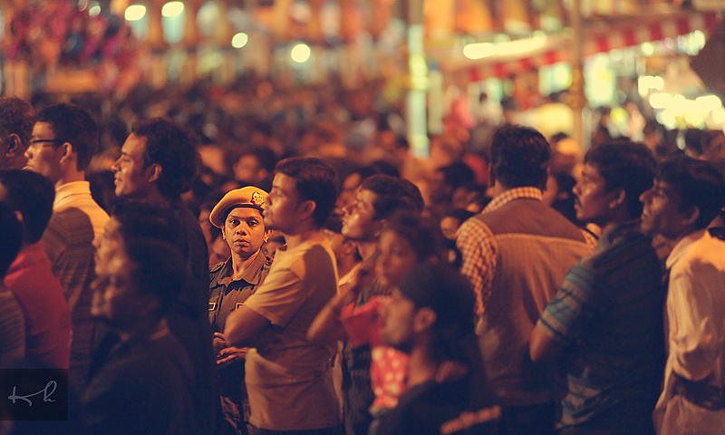 Salah seorang anggota RELA sempat menjenguk kamera ditengah-tengah ribuan manusia yang memenuhi Brickfields, Kuala Lumpur bagi meraikan sambutan Deepavali.