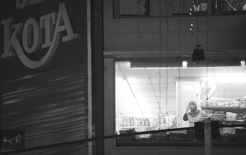 Seorang wanita yang sedang berkerja di salah satu pasaraya masih sempat menjenguk keluar tingkap melihat kemeriahan sambutan Deepavali di Brickfields, Kuala Lumpur. -KH/Malaysia